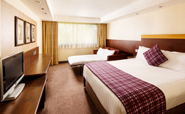 We have Pantry Service that allows you to order snacks and other refreshments. The Service is available from 8.00 am to 11.00 pm. We also have an in-house café. The weekday breakfast is complementary.
